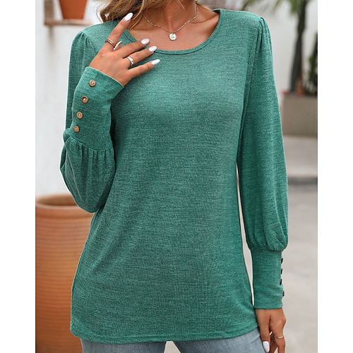 Per donna Maglietta Tinta unica Classico Casual Manica Lunga Girocollo Top Regolari Quotidiano Uscire Weekend Blu Nero Fucsia Verde Cachi Autunno Inverno