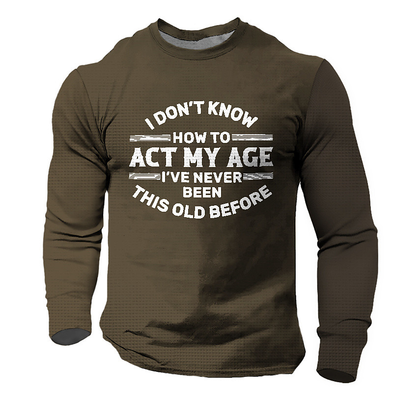 Men's Long Sleeve Graphic T-Shirt with 'I Don't Know How To Act My Age I've Never Been This Old Before' Humorous Life Quote