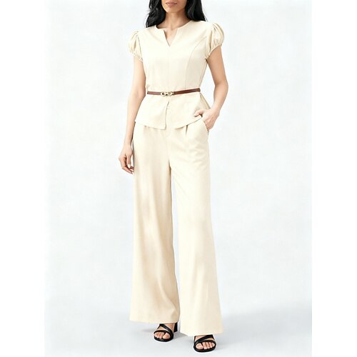 Per donna Set di Pantaloni Manica Corta Scollo a V Tinta unica Elegante Moda Streetwear Affari Ufficio Lavoro Nero Vino Beige Estate Vestibilità regolare