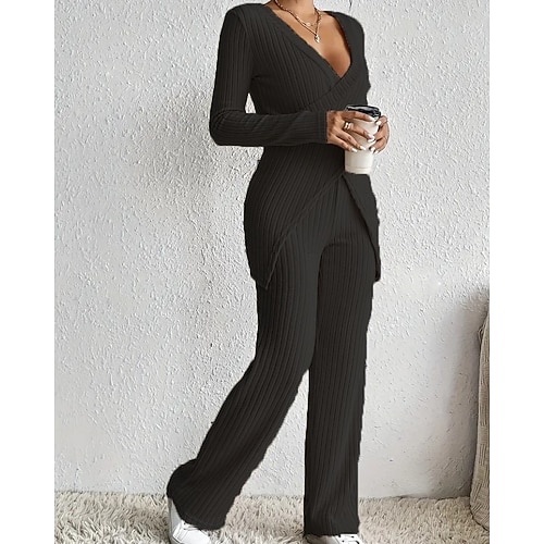 Per donna Abiti da 2 pezzi Tuta da ginnastica lounge Coulisse Tinta unita Completo Abbigliamento Autunno Nero Bianco Lavoro All'aperto Viaggio Leggero Di tendenza Manica Lunga Sport Abbigliamento