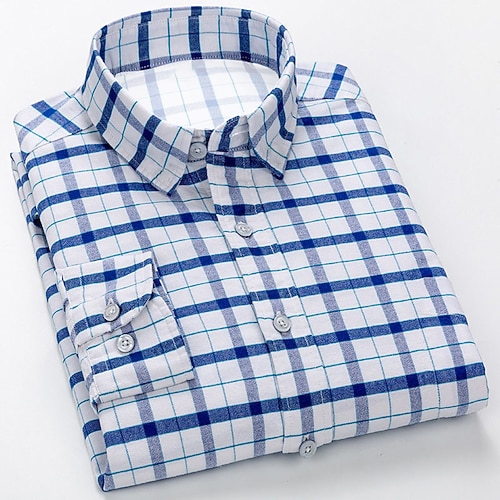 Men's Shirt Dress Shirt Button Up Shirt Plaid Wedding Daily Blue Light Grey Dark Blue Long Sleeve Turndown Spring Fall Clothing Apparel Front Pocket