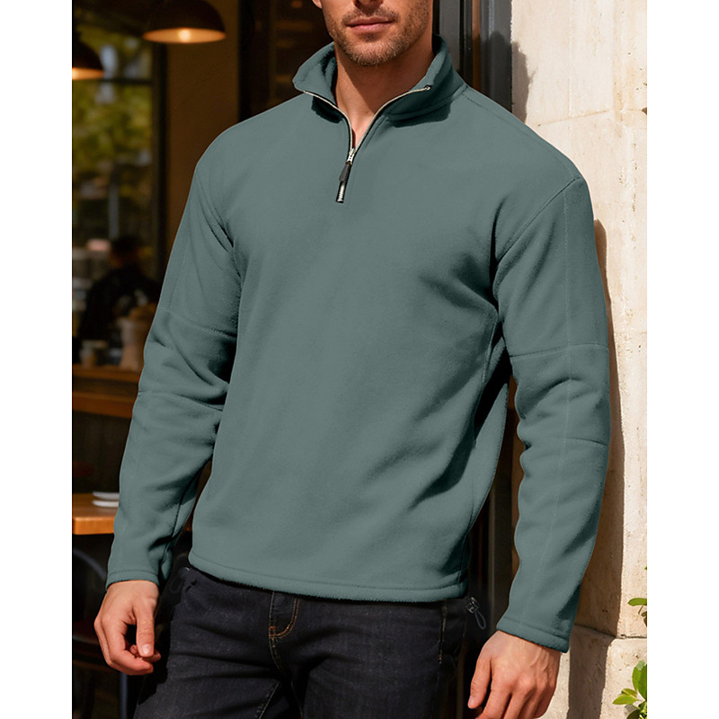 Men's Polo Shirts Quarter Zip Polo Vacation Street Quarter Zip Long Sleeve Fashion Basic Solid Color Zipper Fleece Fall Winter Regular Fit Navy Black khaki Dark Gray Coffee Polo Shirts
