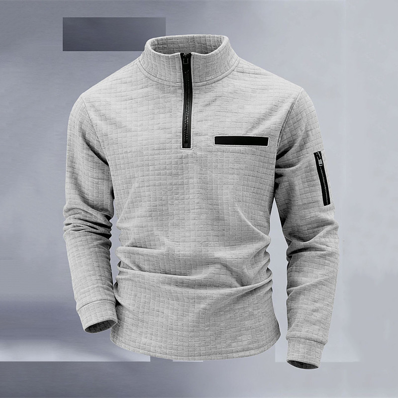 Men's Polo Polo Shirts Vacation Street Quarter Zip Long Sleeve Fashion Basic Plain Jacquard Spring Fall Regular Fit Navy Grey Black White Orange Dark Gray Polo