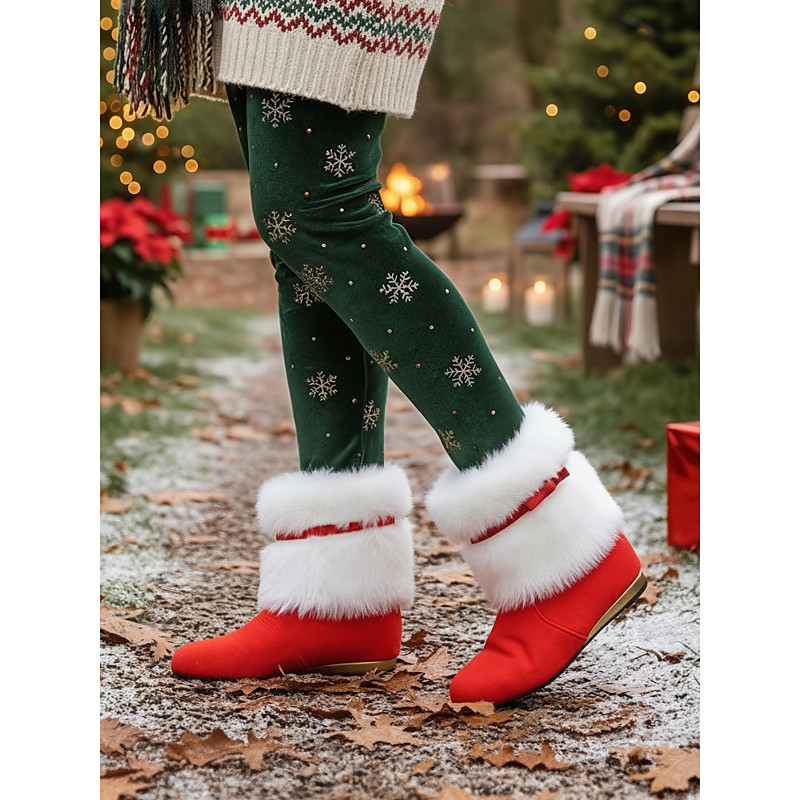 Women's Red Christmas Boots with White Fur Cuffs -Festive Holiday Style, Perfect for Christmas Parties and Winter Celebrations