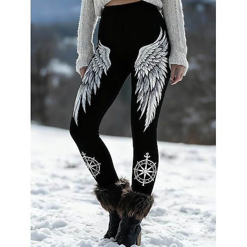 Damen-Leggings im Wikinger-Stil, kuschelig, für Urlaub, Vintage-Look, Ethno-Stil, lange Länge, hoher Bund, Grafikprint, bequem, dehnbar, für Outdoor-Aktivitäten, Urlaub, Freizeit, schwarz, Frühling,