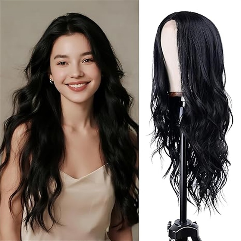 Long Wavy Wig for WomenMiddle Part Curly Wavy Wig Natural Looking Synthetic Heat Resistant Fiber Wig Halloween Cosplay Party Wigs