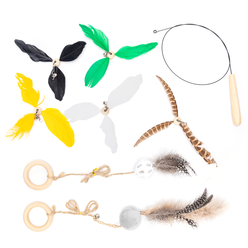Nobleza Bamboo dragonfly and cat teaser combination/With bell/L87cm/Cat teaser *5/Rings *2/UKExtra long steel wire, very flexible;Imitate the circling of birds and cater to cats’ nature;Metal bell, cats’ hearing is keen to catch;Hook design, replaceable feather head