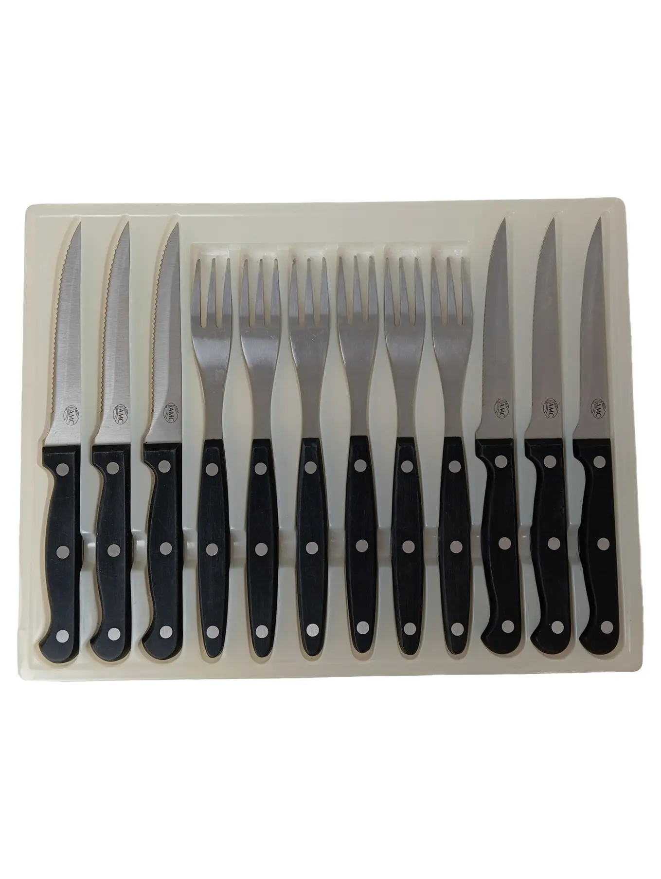 AMC Besteck Set, 12 Teile, Schwarz/Silber, Steakbesteck