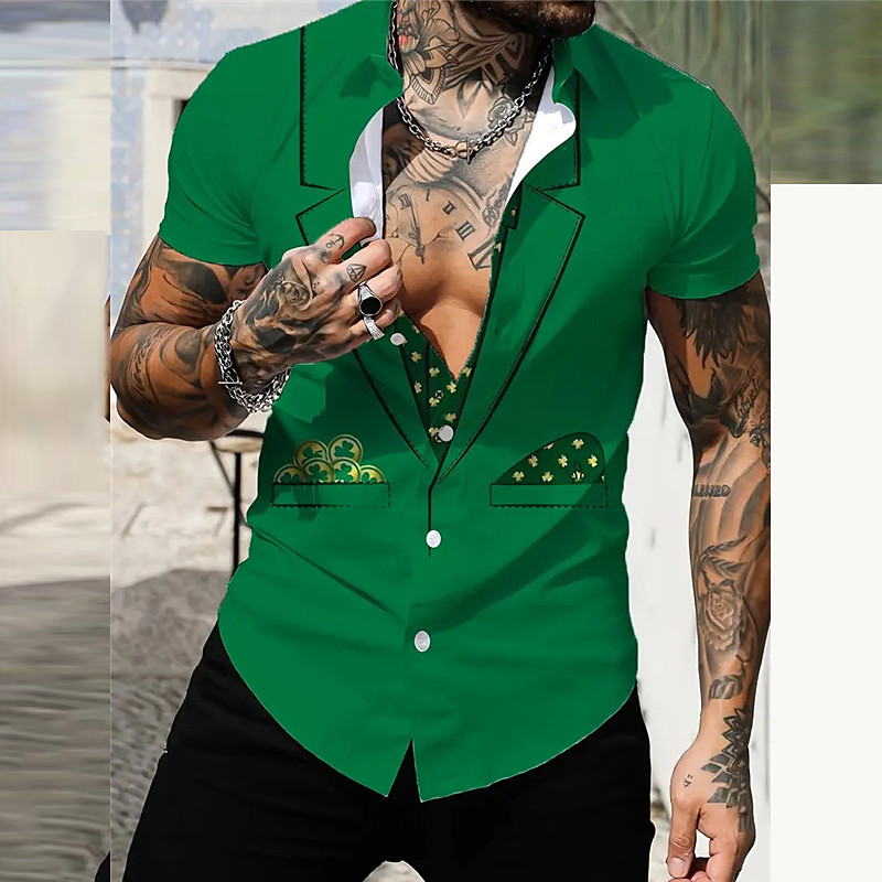 Men's Shirt Dress Shirt Plaid / Check Outdoor Casual Blue-Green White Blue Green Long Sleeve V Neck Summer Fall Clothing Apparel Print