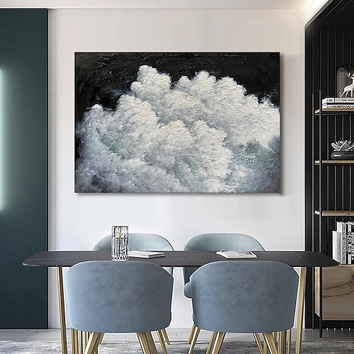 dipinto a olio fatto a mano su tela decorazione da parete onda del mare in bianco e nero trama astratta per arredamento casa cornice tesa dipinto appeso/dipinto arrotolato senza cornice non tesa