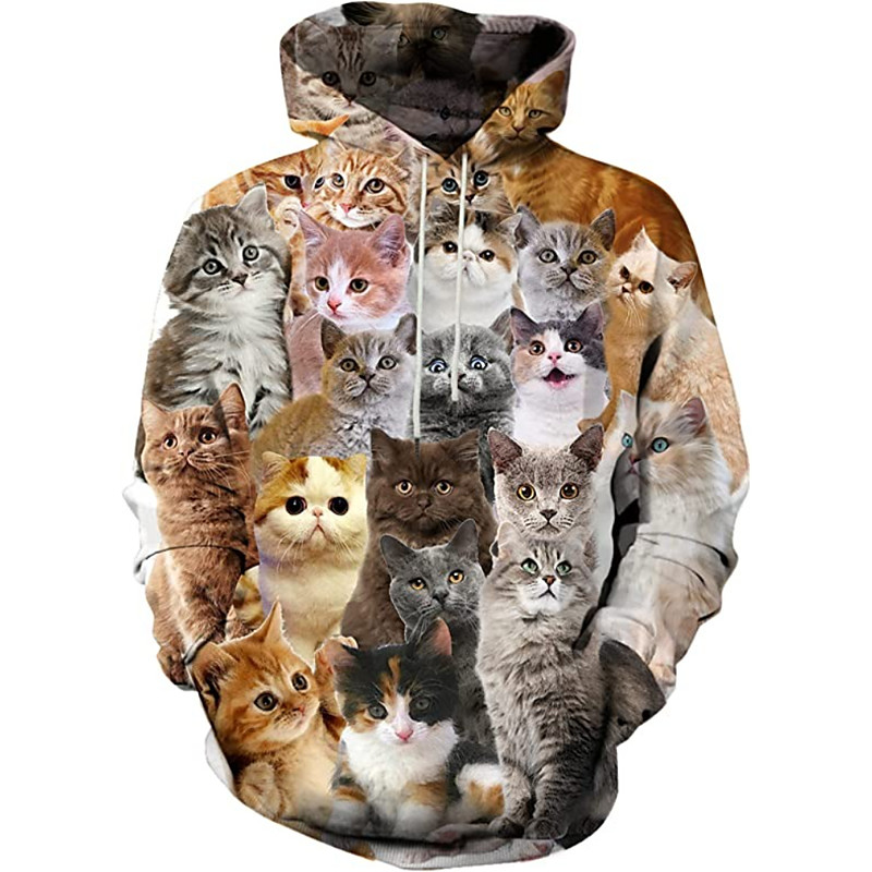 Men's Graphic Cartoon Cat Hoodie Hoodies Sweatshirt Active Cute 3D Print Designer Casual Long Sleeve Hooded Daily Denim Blue Black White Pink Purple Front Pocket Designer S M L XL XXL 3XL