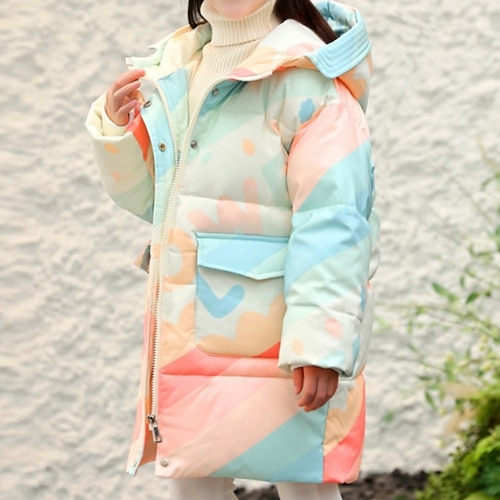 Bambini Ragazze Giacca in piuma Giacca da esterno Giacca Imbottita Arcobaleno Moda Tenere al caldo Antivento All'aperto Cappotto Capispalla 4-12 Anni Autunno Rosa Blu marino Verde