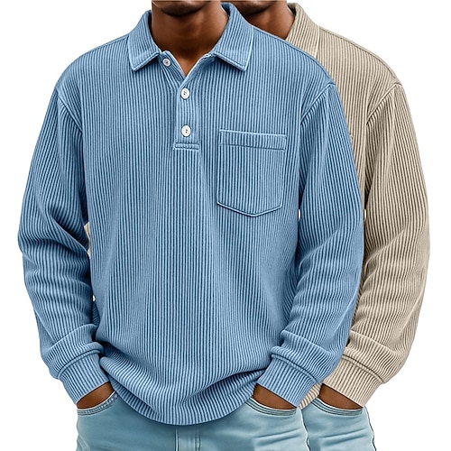 Per uomo Camicia di Velluto a Coste Testurizzato Casuale Sportivo Bavero Manica Lunga Moda Essenziale Blocco di colori 2 Pezzi Caldo Autunno Primavera Autunno Tutte le stagioni Vestibilità regolare