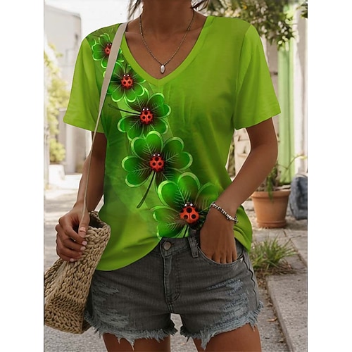 T-Shirt da donna di San Patrizio con grafica floreale stilosa casual maniche corte V-collo tops regolari stampa quotidiana verde estate