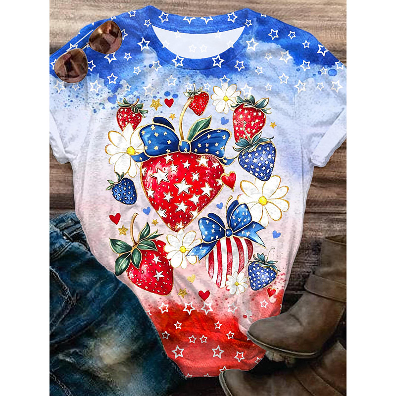 American Independence Day Women's T Shirt Graphic American Flag Vintage Stylish Casual Short Sleeve Crew Neck Regular Tops Daily Weekend Print Blue White Red Royal Blue Sky Blue Summer Spring