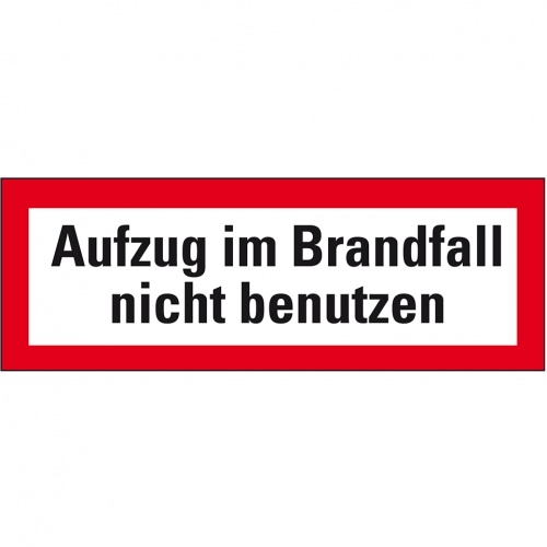Aufkleber I Feuerwehrschild Aufzug im Brandfall nicht benutzen, DIN 4066, Folie, 297x105mm, DIN 4066