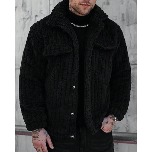 Herren Wintermantel Fleecejacke Freizeitjacke Outdoor Lässig Thermowarm Button-Down Herbst Winter Einfach Streetwear Täglich Umlegekragen Regulär Schwarz Grau Jacken