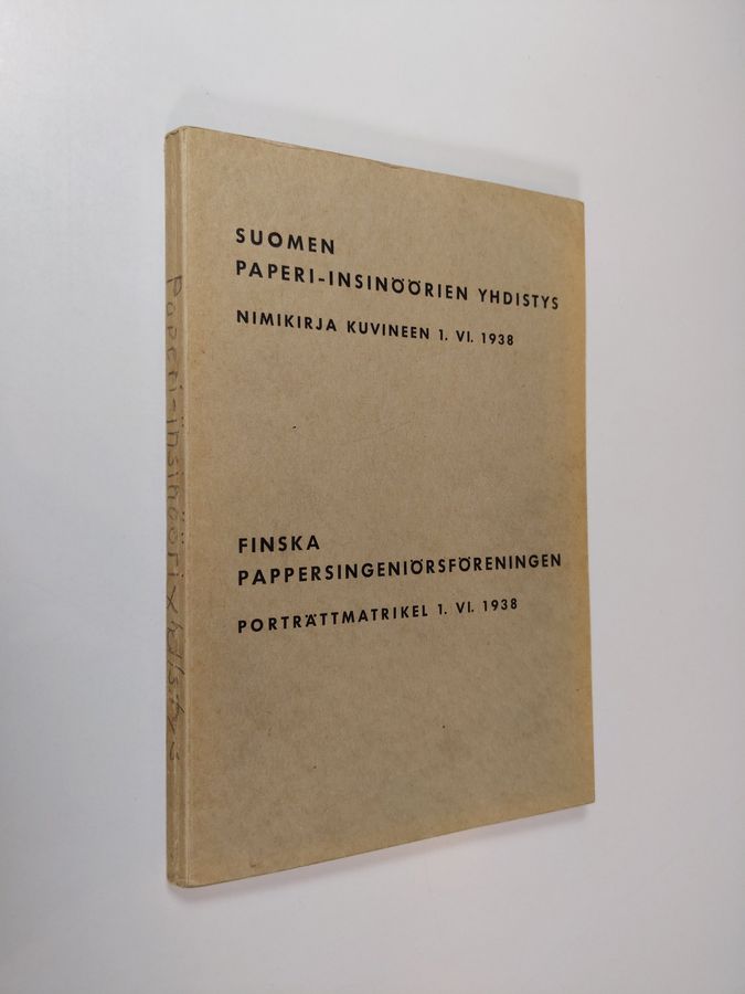 Jac Kaustinen : Suomen paperi-insinöörien yhdistys : nimikirja kuvineen 1. VI. 1938 : johtokunta ja virkailijat 1. V. 1938 - 1. V. 1939