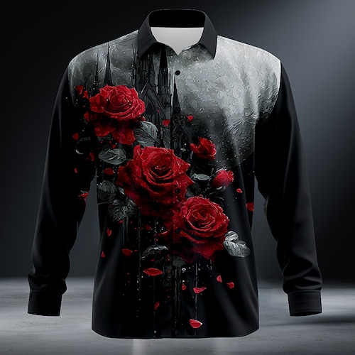 Herren Tag der Toten Rose Hemd Knopfhemd Langarm Dark Punk Gothic Outdoor Ferien Sommer Frühling Umlegekragen 3D-Druck Hemden mit Kragen Schwarz