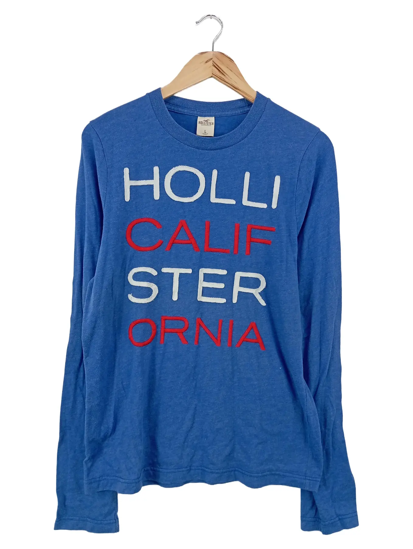 HOLLISTER Herren Langarmshirt Blau Größe L Logo-Print