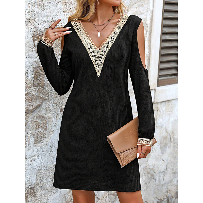 Women's Midi Dress Black Dress Cocktail Dress Formal Dress Elegant Vacation Date Regular Fit Long Sleeve V Neck Black Spring Fall