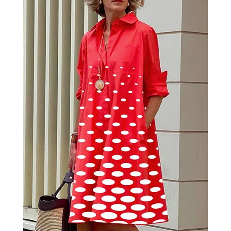 Women's Midi Dress Shirt Dress Casual Dress Fashion Modern Daily Beach Weekend Regular Fit Dot Long Sleeve Shirt Collar Black White Red Spring Fall