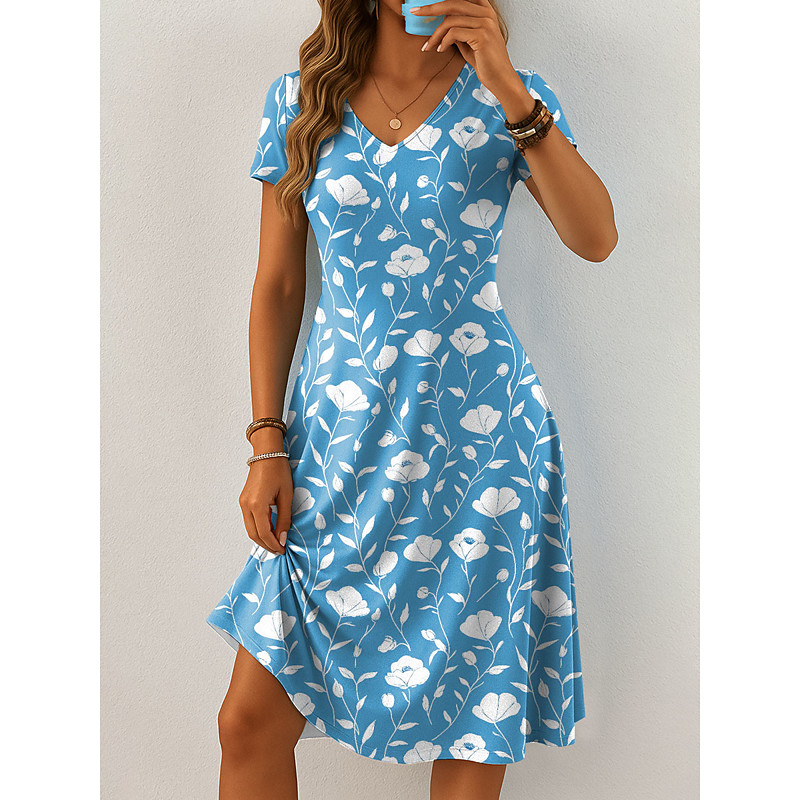 Women's Midi Dress Knit Dress Casual Dress T Shirt Dress Tee Dress Sundress Vacation Casual Boho Beach Regular Fit Floral Graphic Short Sleeve V Neck Pink Blue Orange Green Summer Spring