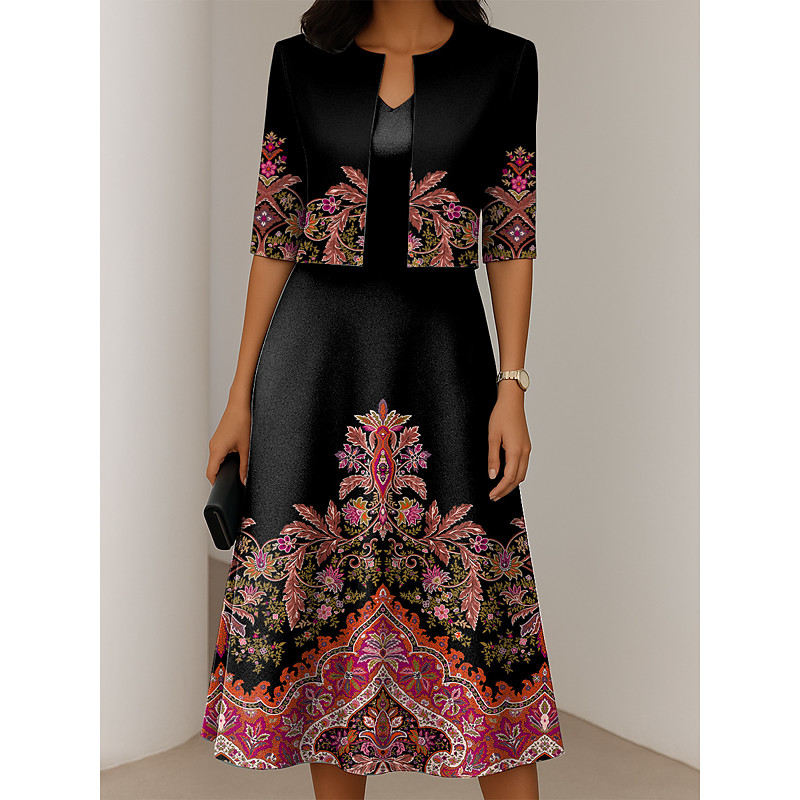 Women's Dress Set A Line Dress Summer Dress Elegant Casual Ombre Graphic Print Midi Dress Half Sleeve V Neck Formal Vacation Yellow Red Blue Spring Fall Regular Fit