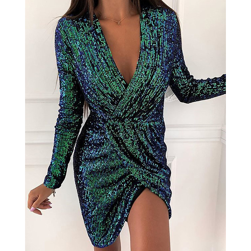 Women's Midi Dress Black Dress Sequin Dress Party Dress Casual Dress Elegant Fashion Modern Outdoor Party Daily Slim Plain Long Sleeve V Neck Light Pink Black White Pink Spring Autumn