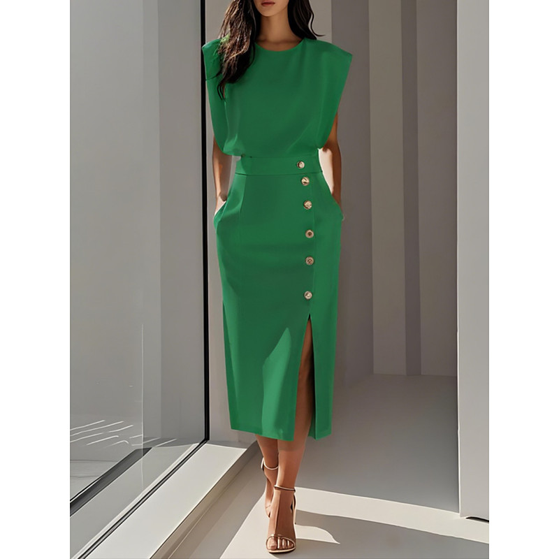 Women's Midi Dress A Line Dress Casual Daily Date Slim Plain Sleeveless Crew Neck Notched Neck Navy Black White Pink Summer Spring