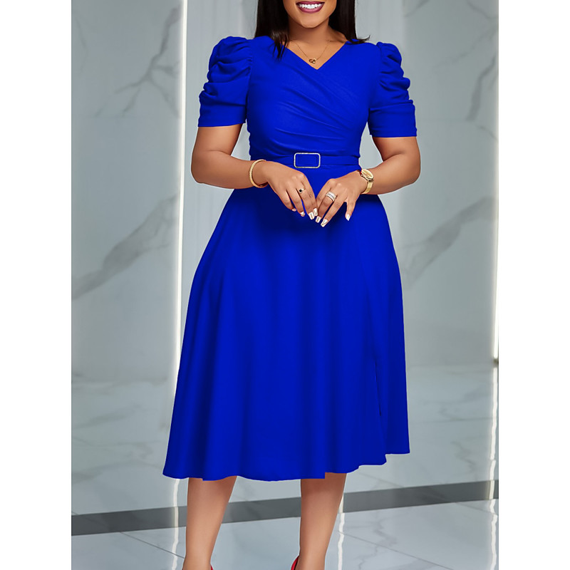 Women's Midi Dress Black Dress Party Dress Elegant Fashion Modern Office Cocktail Party Regular Fit Plain Short Sleeve V Neck Blue Black Red Green Spring Fall Winter