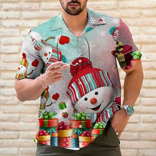 Herren Weihnachtsmann Hemd Kurzarm Hemd Umlegekragen Weihnachten Straße 3D-Druck Schwarz Schwarz / Rot Rote Blau Blau Blau Druck Button-Down Bekleidung Mode Designer Lässig Atmungsaktiv