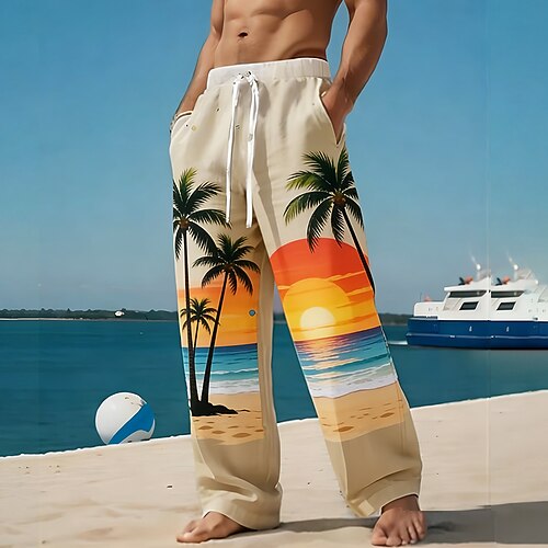 Per uomo Albero di Cocco Tramonto Piante Tropicali Pantaloni Pantaloni casual Pantaloni Larghi Misura del girovita medio Hawaiano All'aperto Vacanza Abbigliamento mare Coulisse elastica in vita