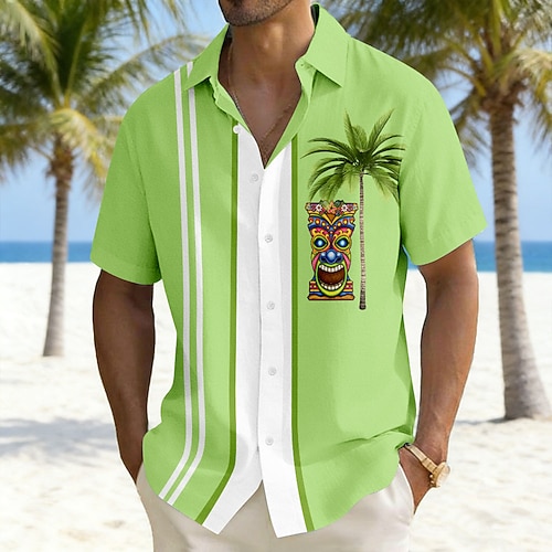 Per uomo Albero di Cocco Piante Tropicali Tiki Camicia hawaiana estiva Camicia con Bottoni Camicia Aloha Manica Corta Hawaiano Vacanza Ferie Abbigliamento mare Estate Primavera Collo ripiegato Stampa