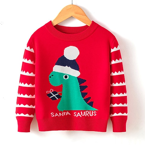 Kinder Unisex Weihnachten Weihnachtspullover Dinosaurier Langarm Rundhalsausschnitt Weihnachtsgeschenke Mode Rote Herbst Kleidung Ab 4 Jahren