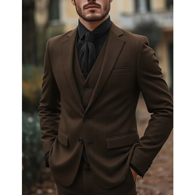 Men's Business Casual Tweed Suits Notch Lapel Black Light Grey Business Formal Solid Colored Tailored Fit 3 Piece Single Breasted Two-buttons