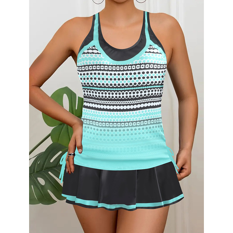 Women's Tankini 2 Piece Swimsuit Skirt Tummy Control High Waist Slim Backless Vacation Beach Wear Flag Stripe U Neck Sleeveless Bathing Suits