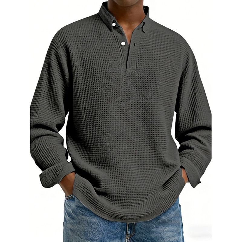 Men's Waffle Polo Shirts Polo Shirts Casual Street Lapel Long Sleeve Basic Modern Plain Buttons Spring Fall Regular Fit Dark Brown Black White Light Green Red Navy Blue Waffle Polo Shirts