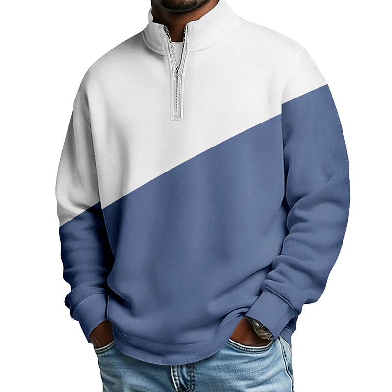 Men's Color Block Zip Polo Shirts Long Sleeve Polo Shirts Grandad Collar Casual School Athleisure Holiday Daily Wear 3D Print Quarter Zip Polo Spring Fall Blue Navy Blue Sky Blue