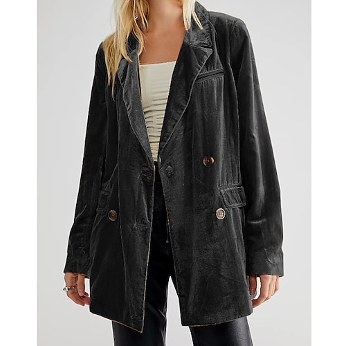 Per donna Blazer Blazer di velluto Confortevole Tasca Bottoni Moda Semplice Feste Festa / Sera Uscire Regolare Collo ripiegato Vestibilità regolare Manica Lunga Capispalla Nero Vino Verde scuro