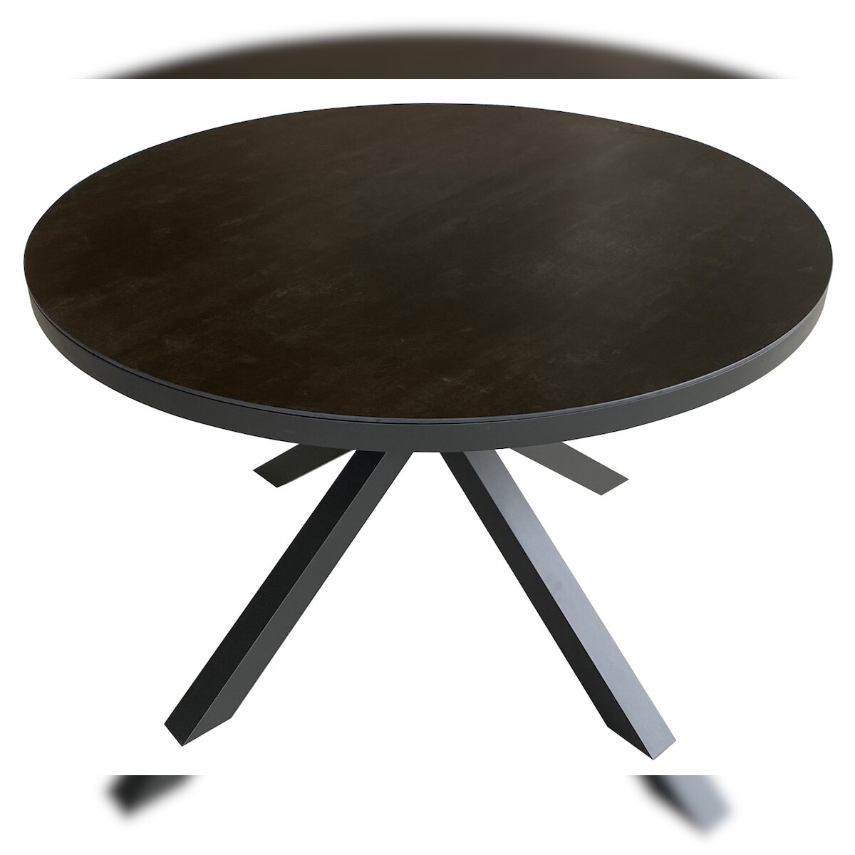 Mr. Deko Tisch Malaga - 120 cm rund - gesinterter Stein dunkelgrau - Gestell Kreuz-Form