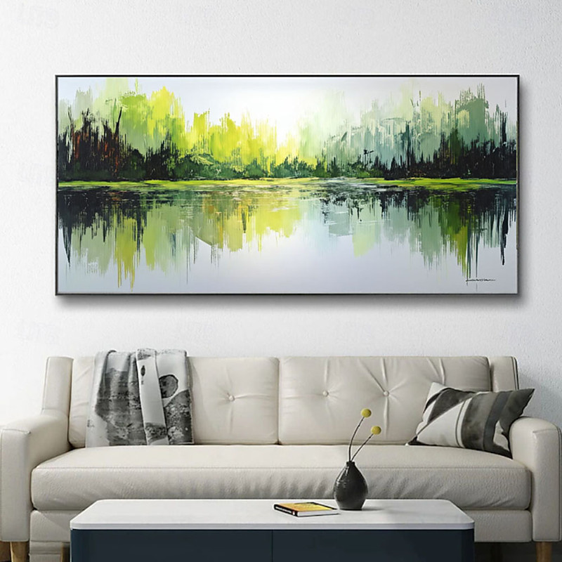 Handmade Landscape Canvas Wall Art Abstract Modern Contemporary Oil Painting Green Seascape Textured Artwork Decor Abstract Green Oil Painting