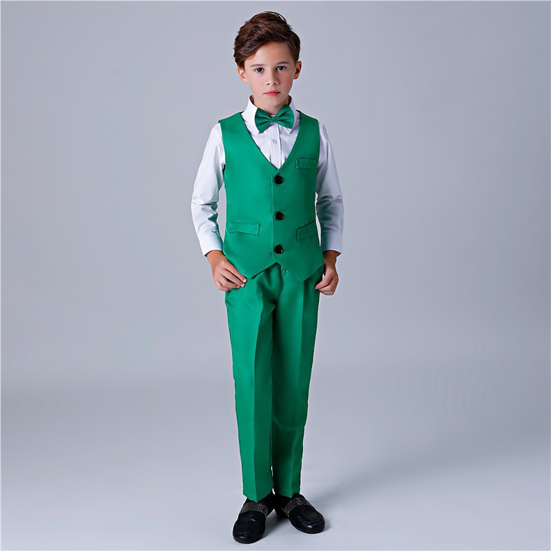 4 Pieces Ring Bearer Suit Boys' Kids Suit Vest Shirt Pants Boy's Formal Suit Casual Outdoor Party Fashion Cool Basic Solid Color Blue Black White Nylon