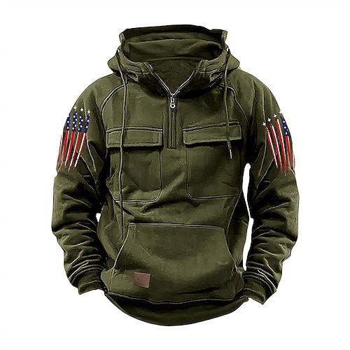 Per uomo Felpa con cappuccio Felpa con cappuccio e zip corta Blu Nero Rosa Vino Verde Con Cappuccio Bandiera Nazionale Coulisse Tasca Quotidiano Sport Outdoor Ferie Cotone Poliestere Streetwear