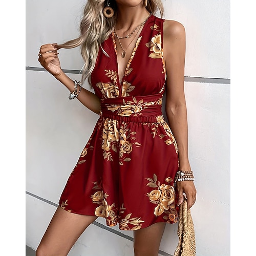 Per donna Pagliaccetto Streetwear Grafico Senza Maniche Pantaloncini larghi Scollo a V Tasca Senza schiena Quotidiano Vacanza Vestibilità regolare Nero Vino Blu marino Estate
