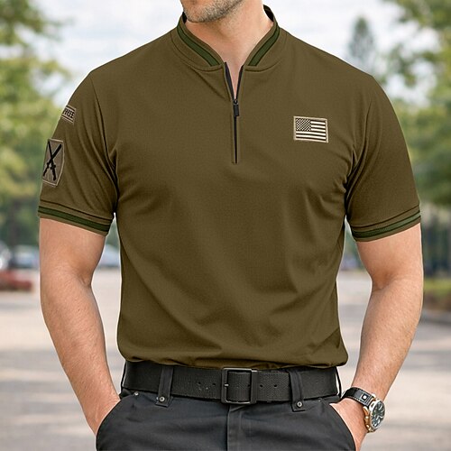 Per uomo Magliette Polo a Nido d'Ape Polo con zip Casuale Fitness Bavero Zip a un quarto Manica Corta Moda Muscolo Tinta unica Semplice Cerniera Estate Primavera Vestibilità su misura Nero Blu marino