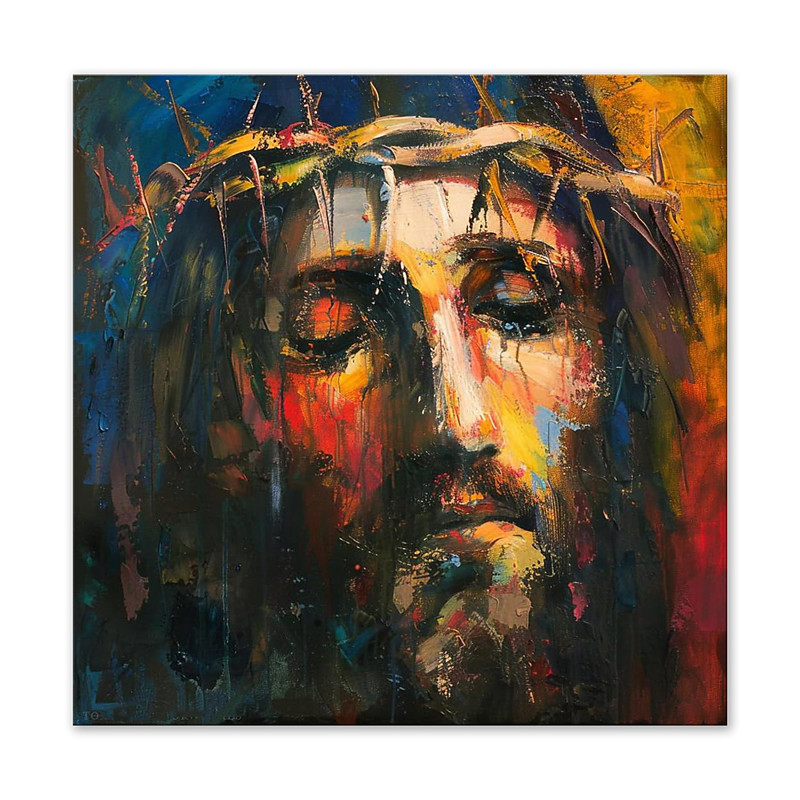Handmade Oil Painting Acrylic Canvas Wall Art Decoration Religious Figure Jesus Face Knife Drawing for Home Decor Rolled Frameless Unstretched Painting