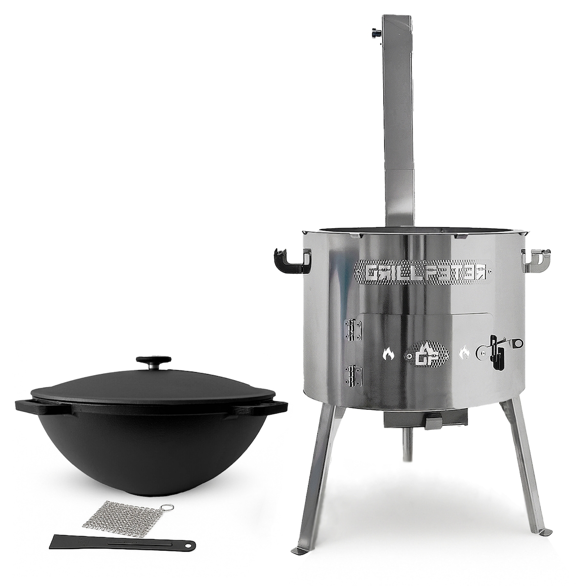 Grillpeter Utschak Timur Ø45 cm Edelstahl Kazan 20L aus Gusseisen Zubehör