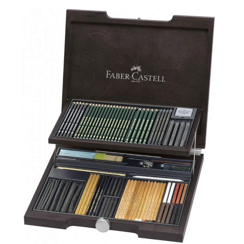 FABER-CASTELL Coffret en Bois Pitt Monochrome avec Accessoires 85 pièces