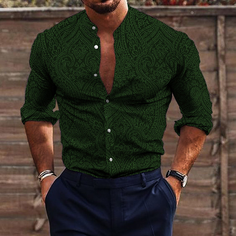 Men's Floral Shirt Button Up Shirt Long Sleeve Vintage Fashion Designer Outdoor Casual Holiday Fall Winter Stand Collar Print Button-Down Black White Yellow Blue Brown